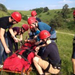 - Schwierige Rettung aus unwegsamen Gelände in Zusammenarbeit mit der Bergwacht